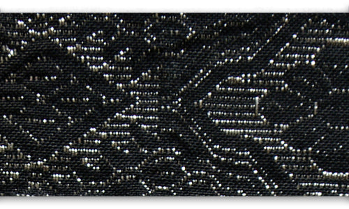1 1/2" wide woven ribbon in an all-over black and white kilim-inspired geometric design. 100% rayon viscose.