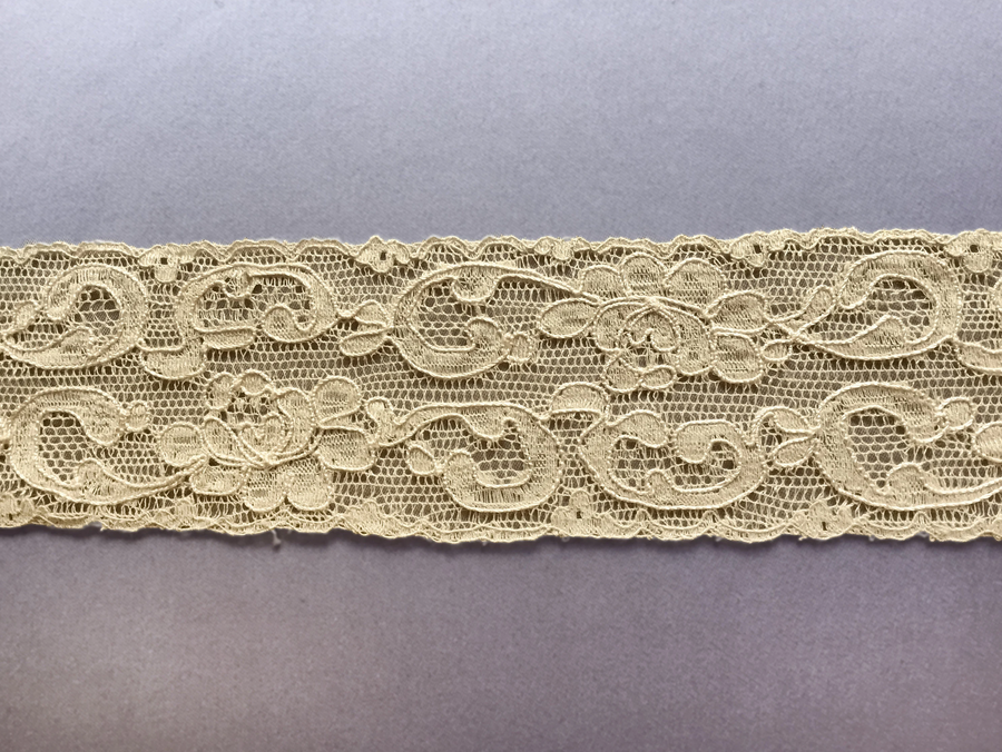 1 1/2" Antique Beige Scrolls & Peonies Vintage Lace Trim (Made in France)
