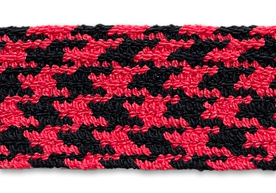 1 1/2" Cerise & Black Houndstooth Trim (Made in USA)