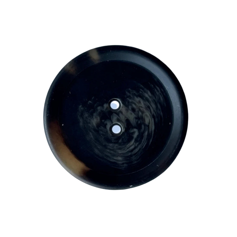 1 1/2" 2-hole plastic button in cool mock tortoise and with a raised rim. Made in Germany.