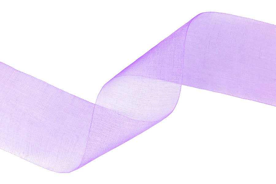 1 1/2" wide luscious lavender sheer ribbon, made of an airy and drapable sheer organdy. 100% Nylon.