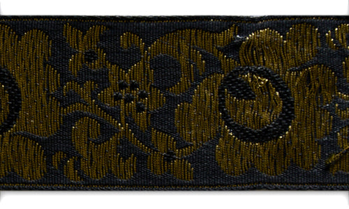 1 1/2" Metallic Gold Ornamental Flowering Vine Black Woven Ribbon