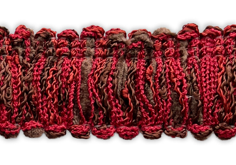 1 1/4" wide trim in shades of cherry red and milk chocolate. This trim is perfect for sewing haute couture garments such as French designer-inspired jackets - layer your trims for a unique and special look! Made in USA.