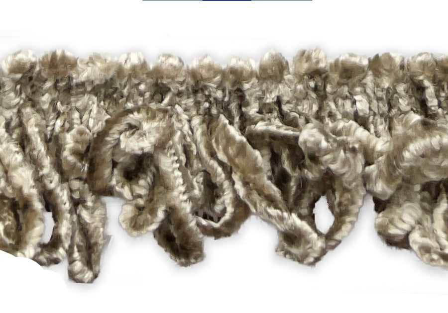 1 1/4" Plush Khaki Fringed Chenille Trim (Made in USA)