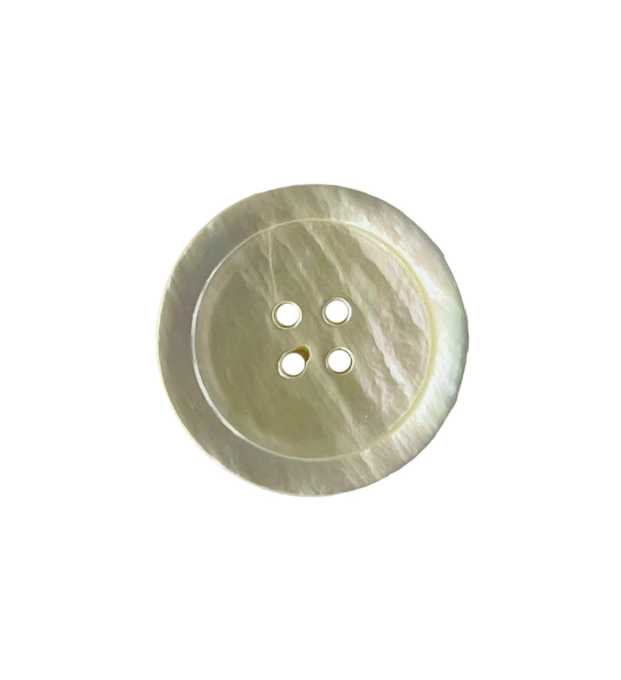 1 1/8" 4-hole natural shell button with raised rim. Made in USA.