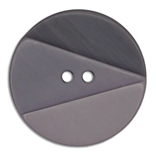 1 1/8" 2-hole plastic button in a design with three pie-shaped wedges in shades of grey. Made in Spain.
