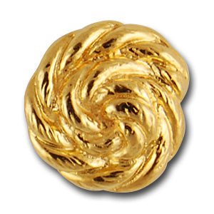 1 1/8" spiral-shaped, gold metal button. The design is reminiscent of a coiled rope. Made in France. Metal loop shank backing.