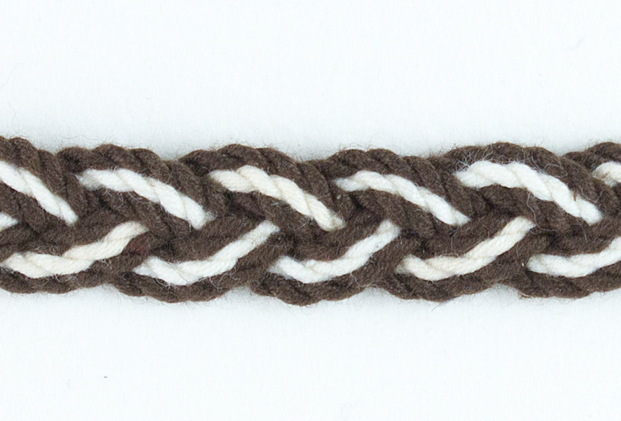 1/2" wide braided trim in brown and natural. This trim is perfect for sewing haute couture garments such as French designer-inspired jackets - layer your trims for a unique and special look! 100% cotton. Made in France.