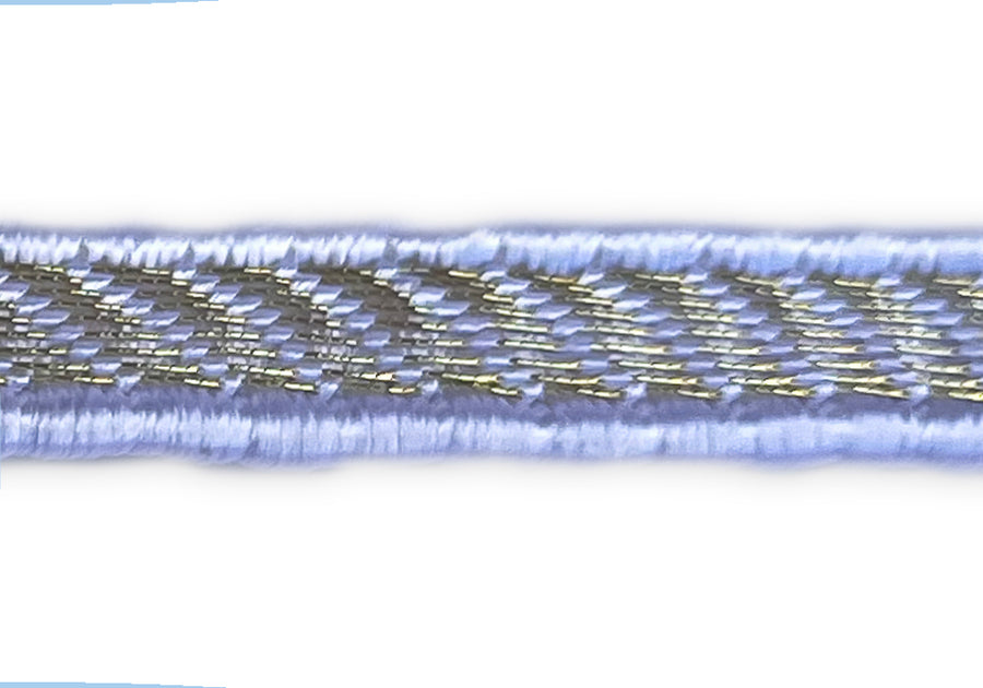 1/4" wide braided trim with white edges and a gold metallic center plait. This trim is perfect for sewing haute couture garments such as French designer-inspired jackets - layer your trims for a unique and special look! Made in Austria.