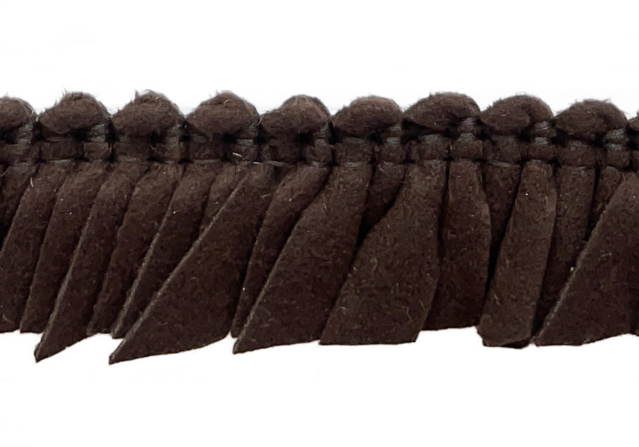 1" wide pleated leather trim in acajou brown. This trim is perfect for sewing haute couture garments such as French designer-inspired jackets - layer your trims for a unique and special look! Made in France.