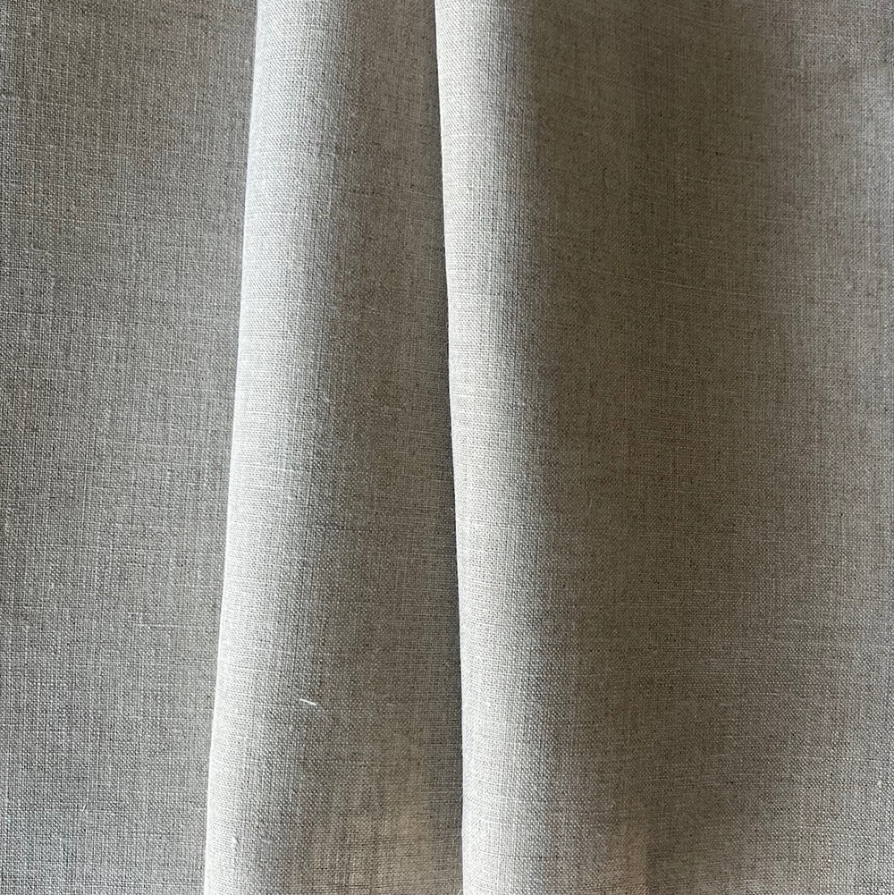 A 120" wide light-weight linen in a neutral flax color - this classic linen is perfect for tops, billowing dresses, seamless tablecloths, slipcovers, and pants. Made in Poland. 100% linen. 120" extra wide.