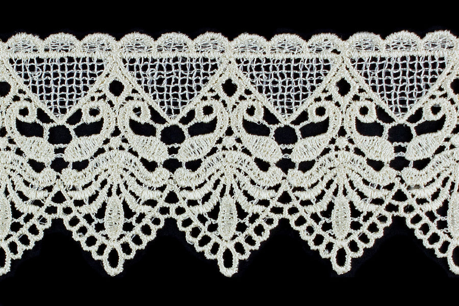 2 1/4" wide cream Venise lace in a floral pattern. Made in Italy.