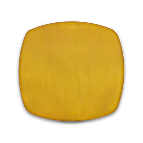 Square plastic button in bright mustard yellow and with rounded corners. Shank backing.