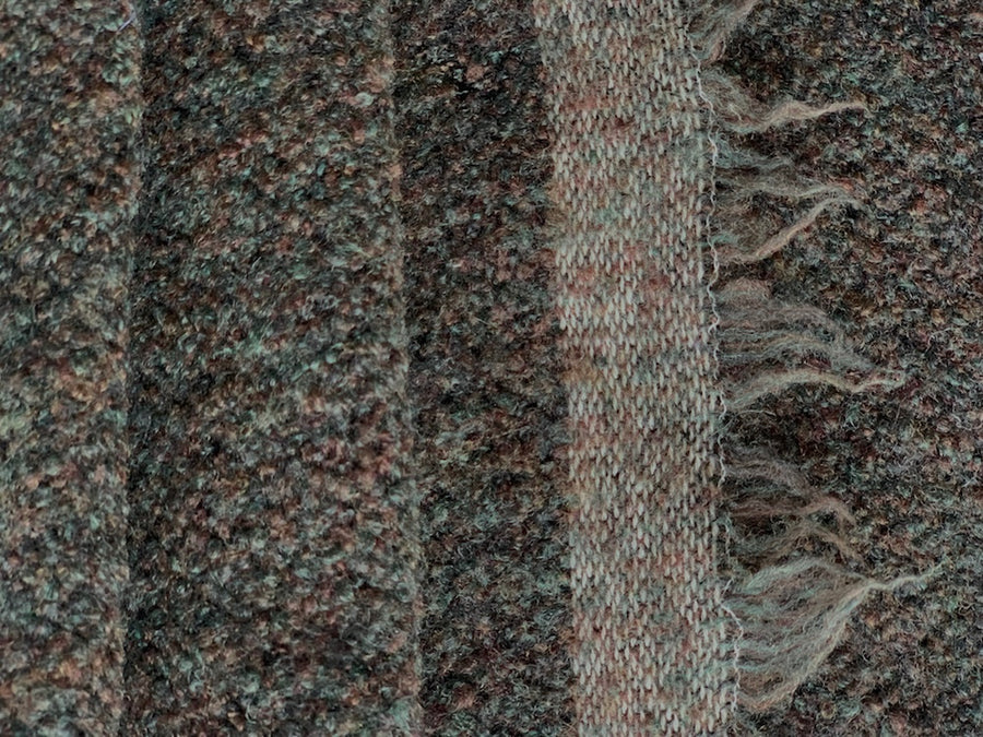 A stretchy wool bouclé in shades of carbon gray and mahogany brown - with its soft texture and gorgeous coloration, this bouclé is perfect for a wrap or a sweater. Made in France. 100% wool. 31" wide.