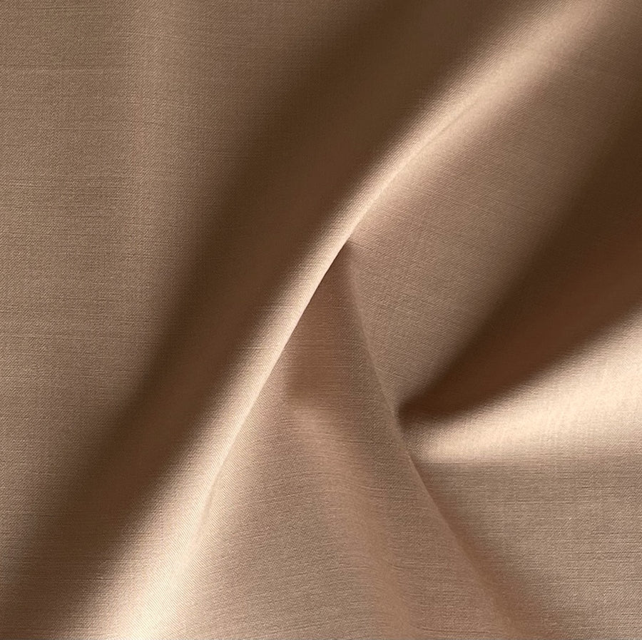 A high-end, light-weight stretch tropical woolen in classic camel - with a touch of lycra, this smooth and drapey travel-worthy wool is perfect for a wrap dress, a jacket, a duster, or pants. Made in Italy by Tollegno. 98% wool and 2% lycra blend. 62" wide.