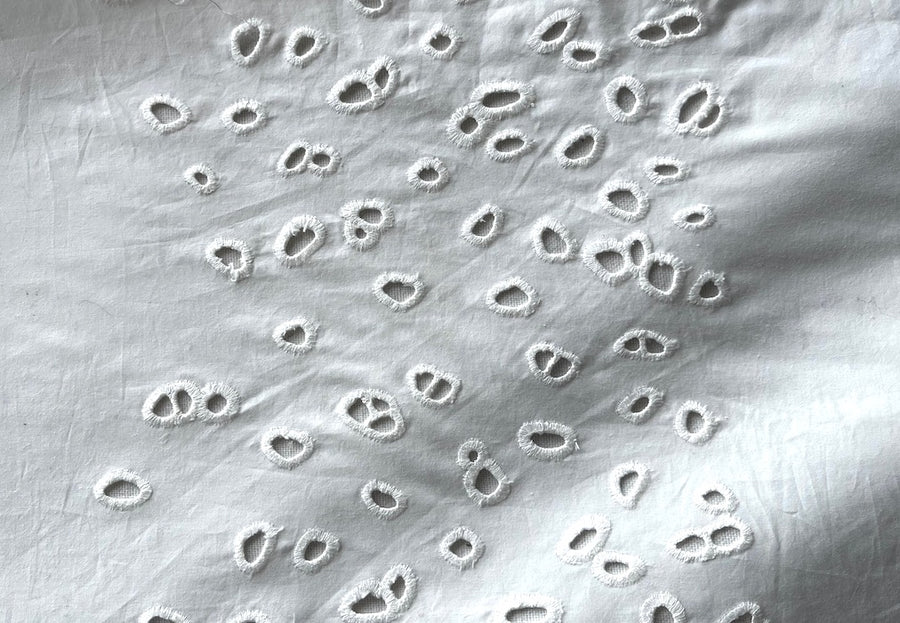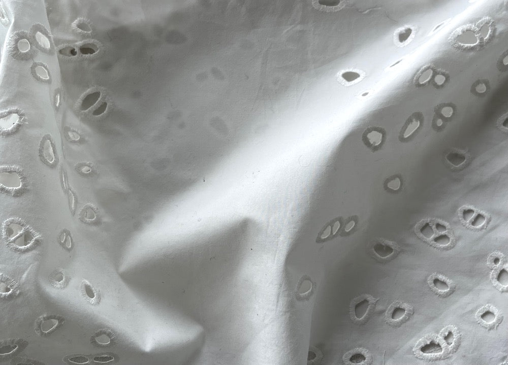 White Flirty Striped Eyelet Clusters Cotton Poplin (Made in Italy)