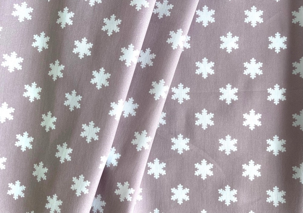 A stretch cotton shirt-weight in a sweet print of white flowery snowflakes on a dusty mauve background - with a touch of lycra, this cotton is perfect for bespoke shirts, pajamas, or blouses. Made in Italy. 96% cotton and 4% lycra. 59" wide.