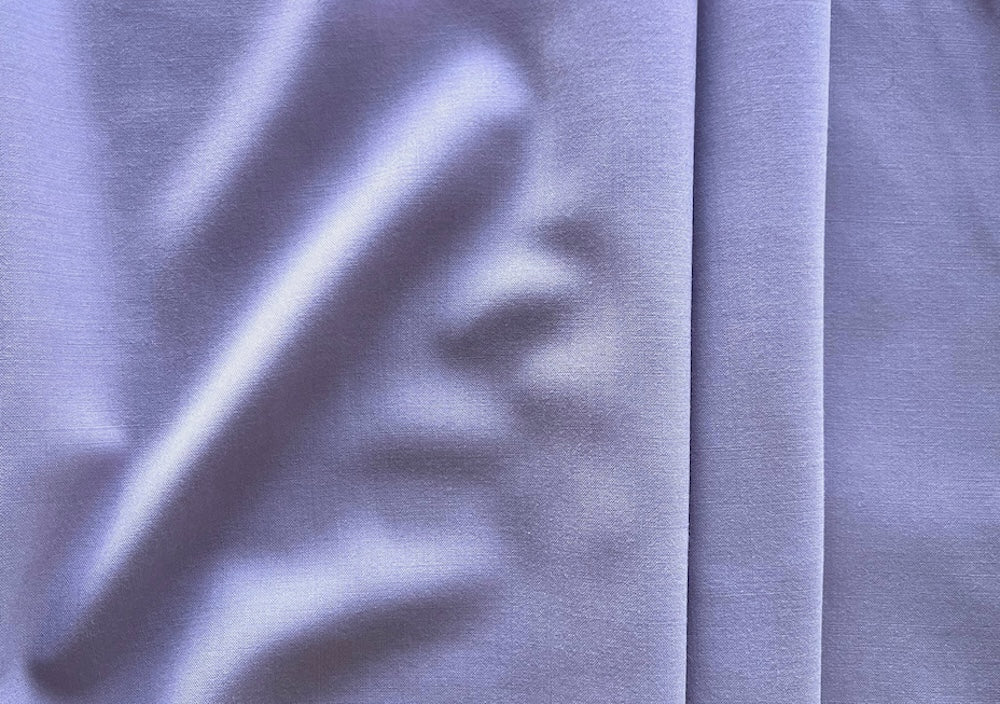 A lighter-weight stretch wool suiting in fresh wild lilac - with a touch of lycra for comfort, this smooth wool suiting is perfect for summer tailoring, travel garments, classic tailoring, slacks, dresses, or a stand-out suit. Made in Italy. Wool and lycra. 60" wide.