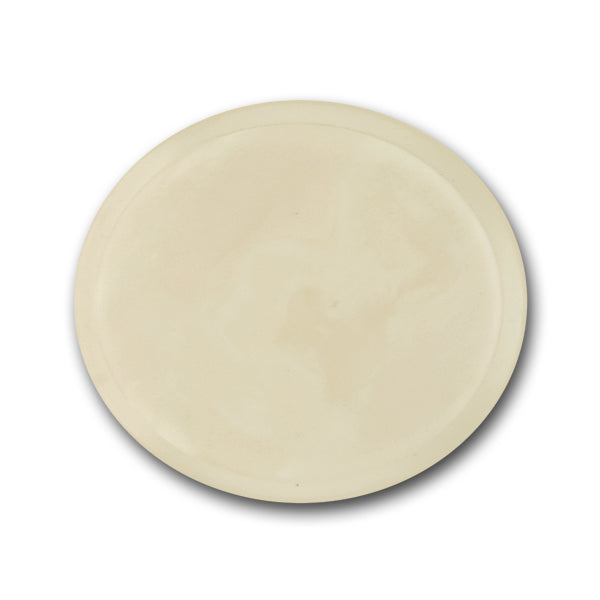 Matte, winter white oval plastic button, with a marbleized top, and narrow translucent rim. Imported from Italy. Plastic tunnel backing.