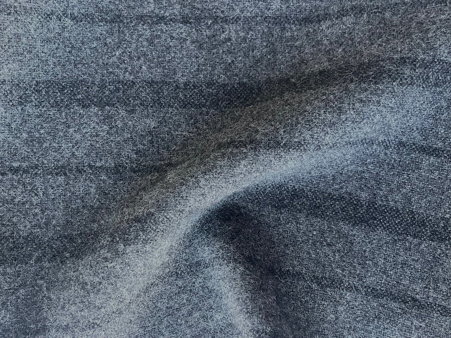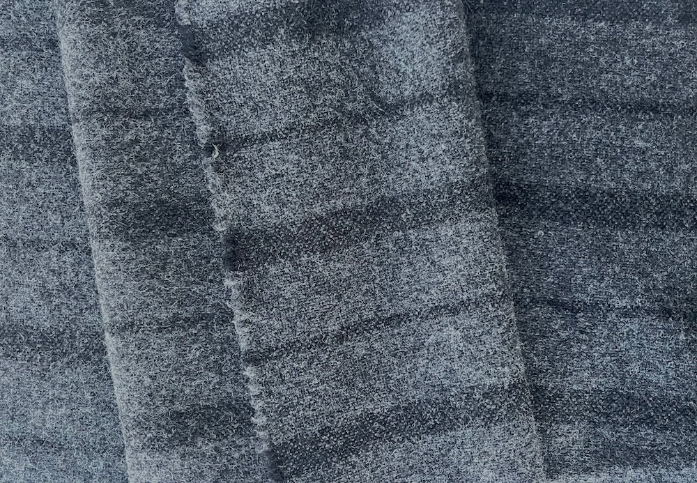 A graphic cashmere and wool blend with graphic horizontal variegated black and charcoal stripes - this soft as butter cashmere blend is perfect for plush wraps or scarfs. Made in Italy. 70% wool and 30% cashmere. 60" wide.