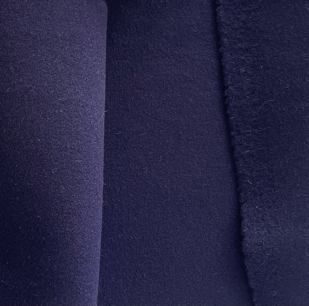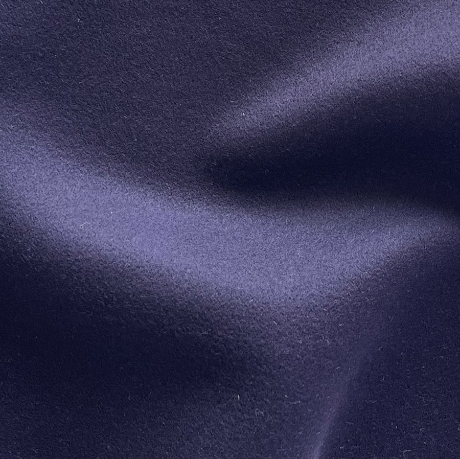 An exquisite double-faced cashmere blend coating in Indigo Thistle- this soft as butter coating is perfect for a coat, a cape, or a jacket. Made in Italy by Loro Piana. 70% wool and 30% cashmere. 60" wide.