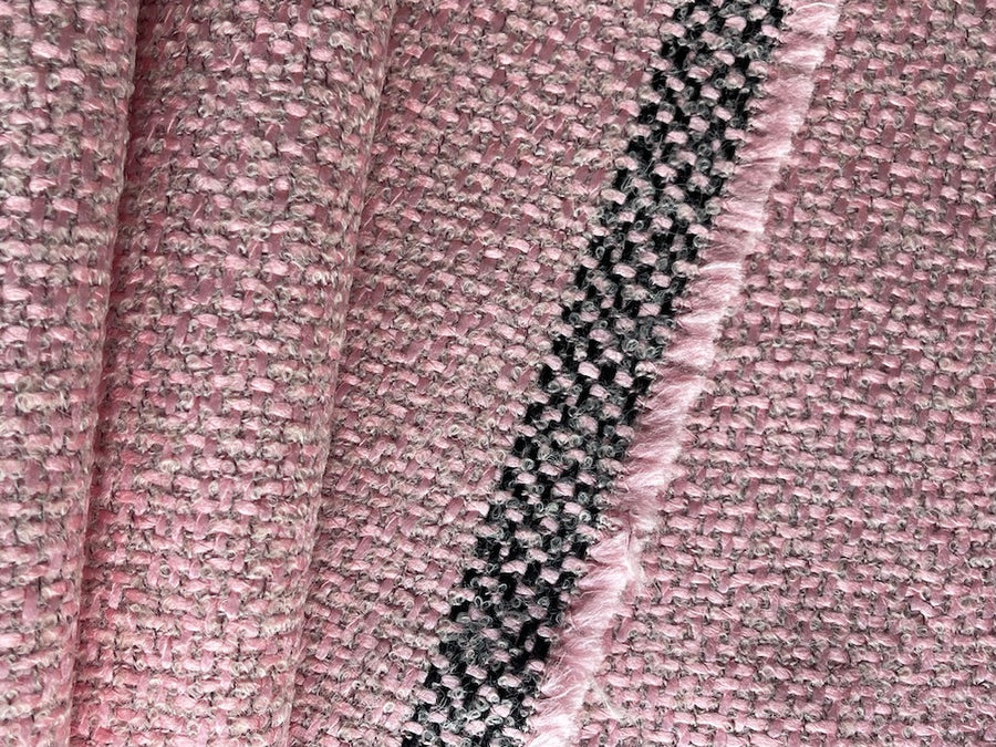 A high-end, mid-weight wool blend bouclé in soft springtime tea rose pink - this charming, chunky bouclé is perfect for a Chanel type jacket, skirt, or a light-weight duster. Made in Spain. Mohair, polyamide and acrylic. 58” wide.