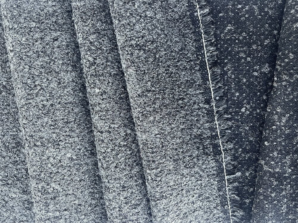 A high-end textured wool bouclé in a melange of fog and dove grey - this classic wool bouclé is perfect for a Chanel-style suit, a skirt, or a deceptively simple dress. Made in Italy by Etro. Wool, polyester, and cotton. 61" wide.