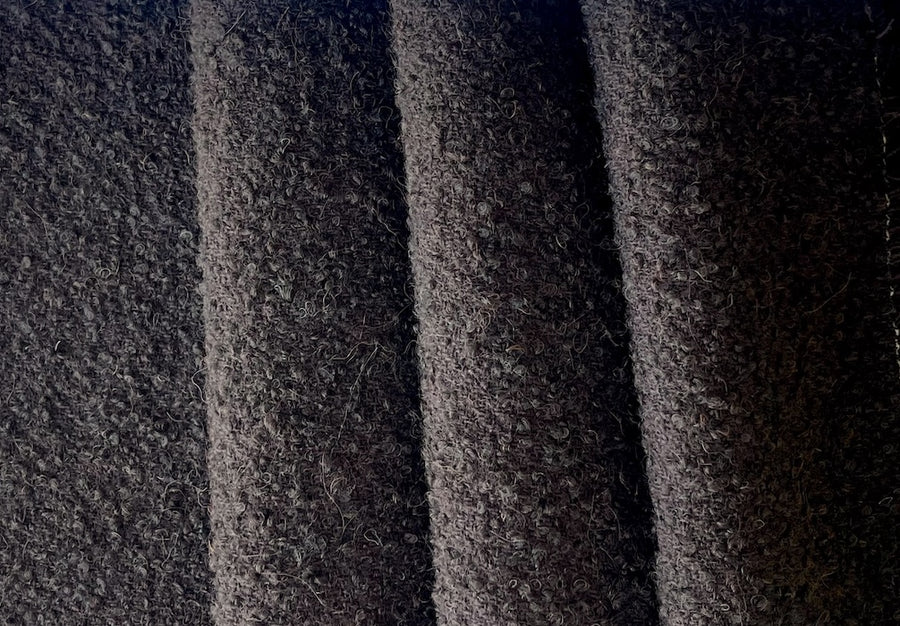 A delightfully chunky wool blend bouclé in shades of milk chocolate truffle - this elegant wool bouclé is perfect for a beautiful throw, a Chanel-style suit, or a cozy jacket. Made in Italy. Wool and polyester. 58" wide.
