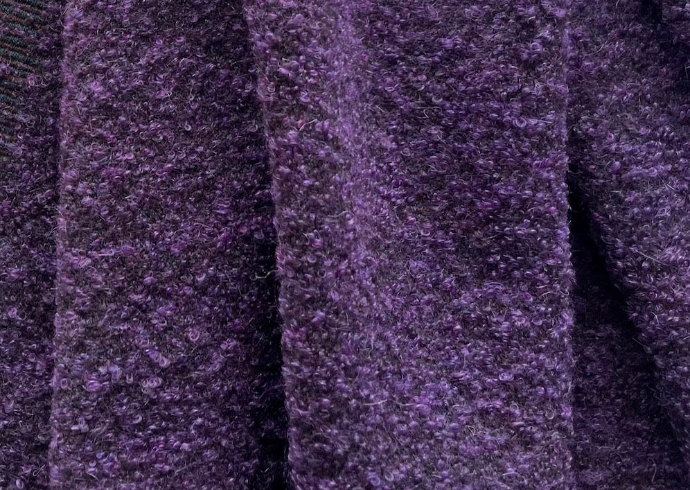 A mid-weight mohair blend bouclé in shades of ripe Italian plum and onyx - this invitingly plush bouclé is perfect for an unstructured jacket, a coat, or a wrap. Made in Italy. Wool, mohair, and acrylic. 60” wide.