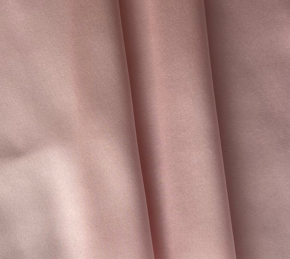 A gleaming stretch silk satin charmeuse in blossom blush pink - with a touch of lycra for comfort, this fluid silk charmeuse has liquid drape and is perfect for blouses, lingerie, wrap tops, anything bias-cut, or lining. Made in Italy. 98% silk and 2% lycra. 54" wide.