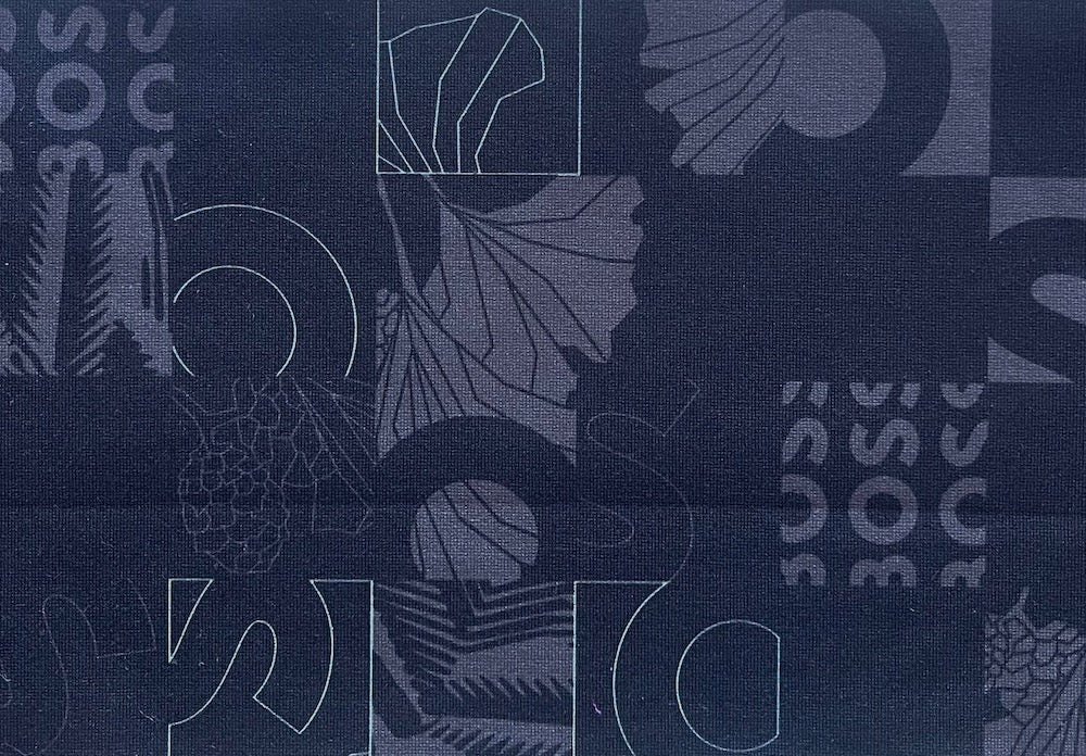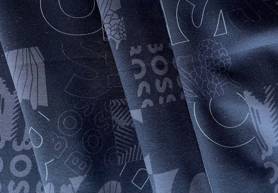 A designer mid-weight signature cotton blend ponte doubleknit in a grid pattern with variations and abbreviations of Hugo Boss's name in pewter grey and black - with a hint of lycra, this stable, washable knit is great for skirts, jackets, pants, hoodies, or tunics. Made in Italy for Hugo Boss. 90% cotton and 10% lycra. 64" extra wide.