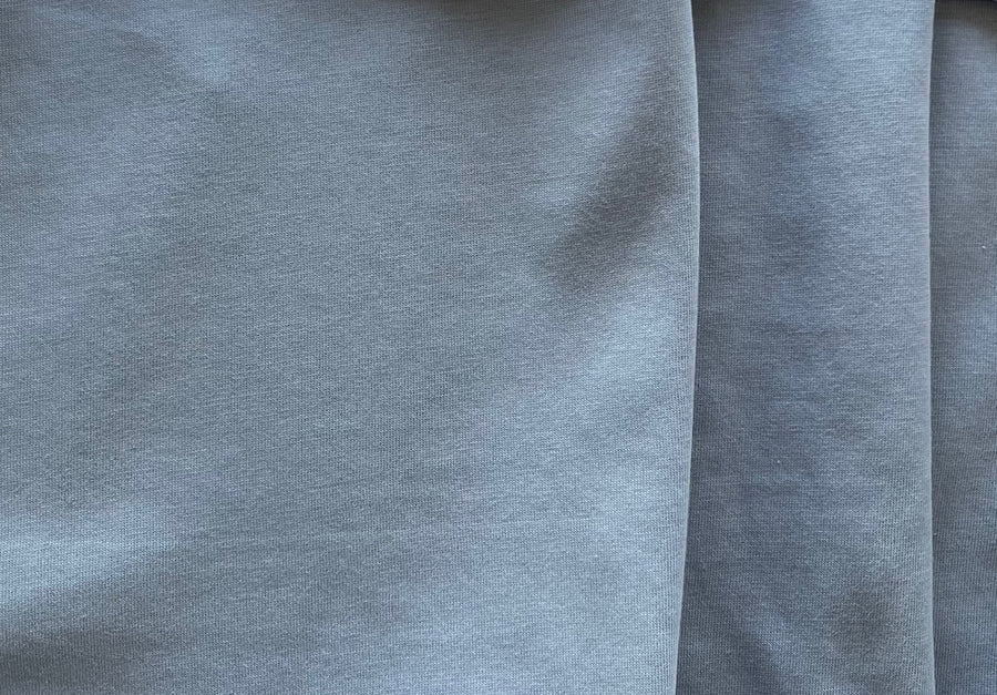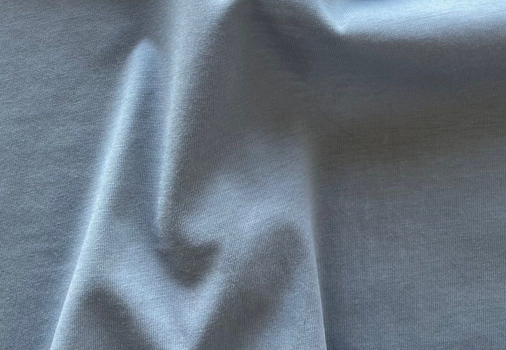 A lighter-weight cotton knit in pewter grey - this beautifully finished, buttery soft cotton knit is the perfect weight for tops, a wrap, lounge-wear, or T-shirts. Washable. Made in Italy. 100% cotton. 68" wide.