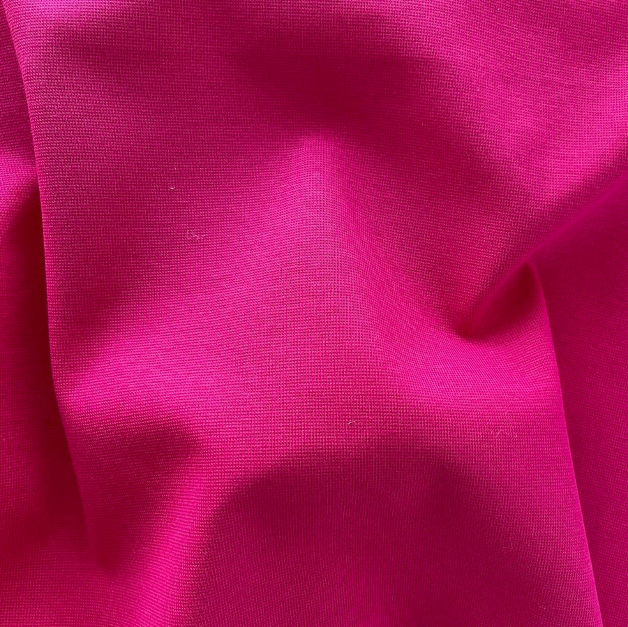 A superb, mid-weight cotton ponte double knit in shocking fuchsia - this smooth cotton double knit is the perfect weight for travel-wear, slacks, jackets, comfortable tops, or tailored dresses. Made in Italy. 100% cotton. 62" wide.
