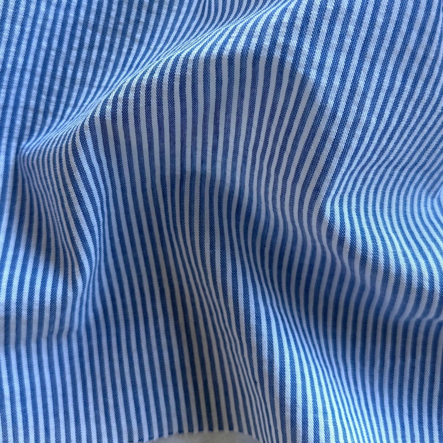 An airy cotton seersucker in a classic royal blue and white stripe - this handsome seersucker is perfect for gift wrapping, full skirts, shirts, nightwear, blouses, or dresses. 100% cotton. 58" wide.