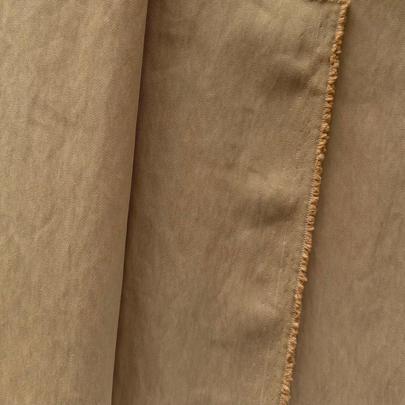A mid-weight, water-resistant cotton blend twill in a classic shade of deep khaki - this handsome cotton twill is perfect for jackets, trench coats, pants, or bags. Made in Japan. 50% cotton and 50% polyester. 55" wide.