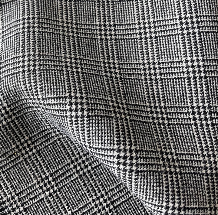 A high-end, reversible, double-faced wool coating with a black and white Glenn plaid on one side and a lovely warm deep caramel on the reverse - this stunningly handsome and timeless coating is perfect for a dramatic cape, a tailored overcoat, a cozy throw, or a hooded jacket. Made in Italy. 100% wool. 60" wide.