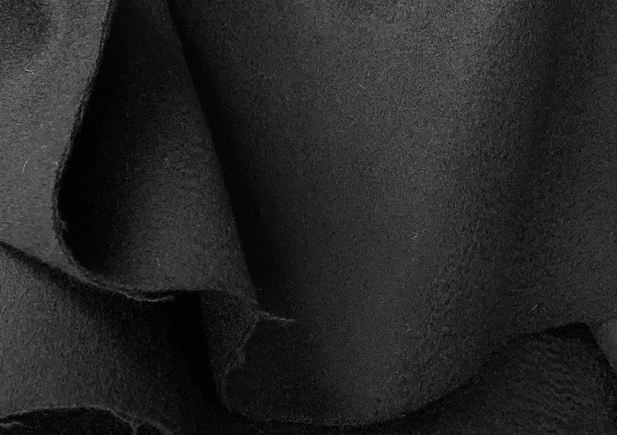 An unbelievibly cushy double-sided cashmere coating in sophisticated black - softer than a storm cloud, dense and tightly woven, this cashmere coating would be excellent for an overcoat. Made in Italy for Loro Piana. 100% cashmere. 61" wide.