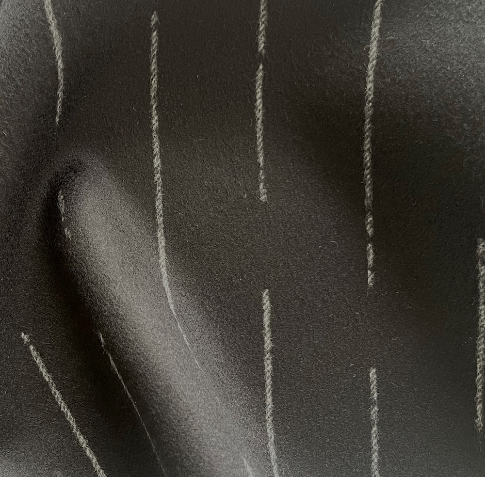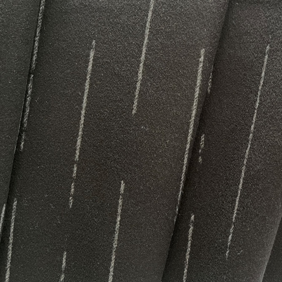 A couture, mid-weight, double-faced wool melton coating in coal black with white irregular stripes - this elegant, high-end melton is perfect for a wrap coat, overcoat, or a jacket. Made in Italy by Piacenza. 100% wool. 54 wide.