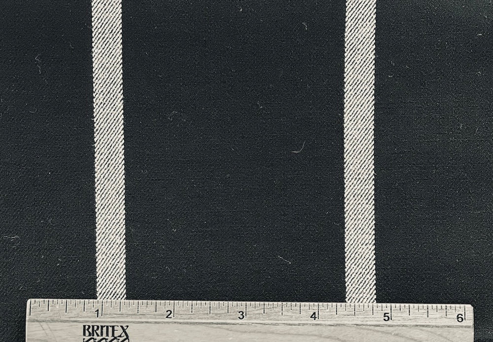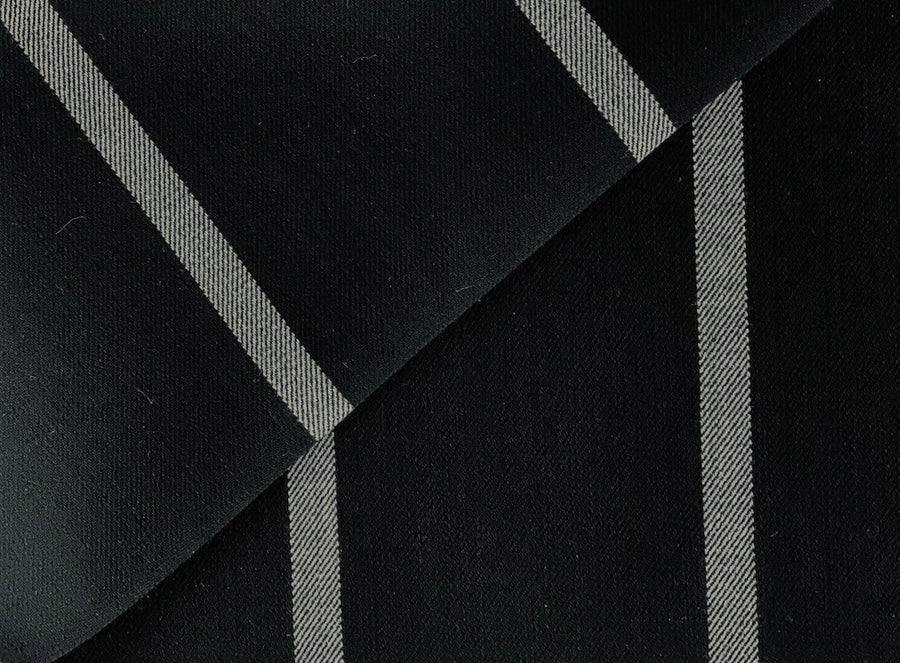 A reversible double-faced stretch wool coating in lengthwise black and white stripes (3/8" wide) on one side, and solid black on the reverse - perfect for a tailored overcoat, slim maxi-skirt, or a dramatic hooded jacket...showcase the reverse side by trimming the pockets and cuffs! Made in Italy. Wool and lycra blend. 60" wide.