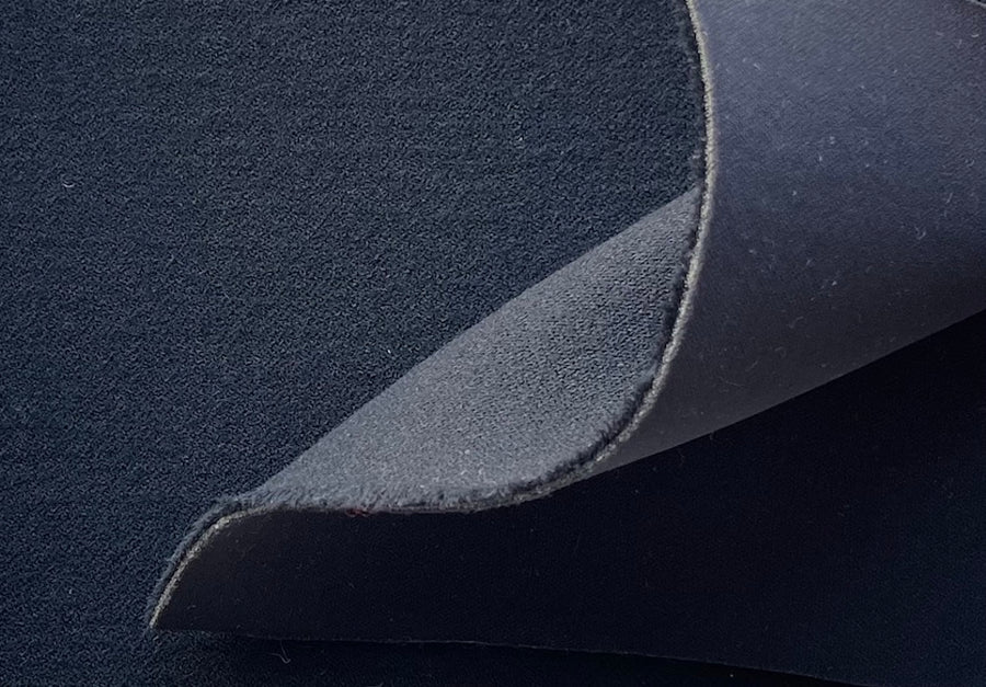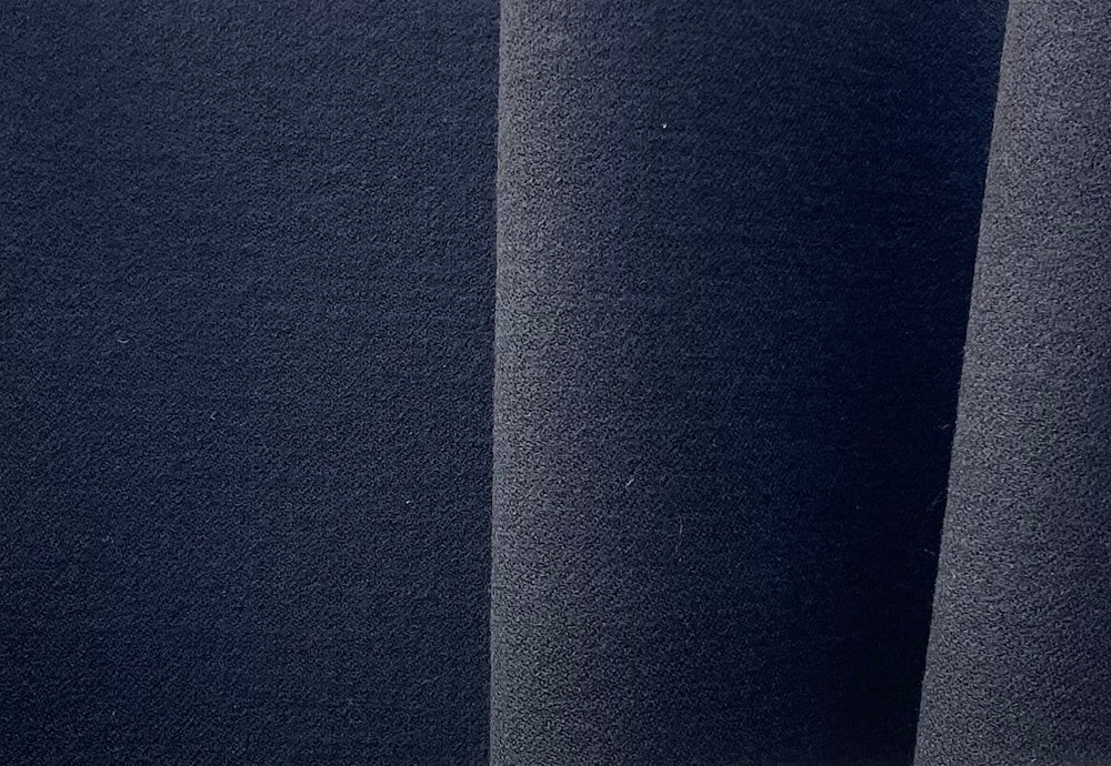 A double-faced, technical wool blend coating in slate grey with a crepe weave on one side , and solid black and smooth scuba on the reverse - this warm technical wool will stand up to the elements and is perfect for a tailored coat or a dramatic hooded jacket. Made in Italy and from a high end mill. 54% wool, 16% polyurethane, 14% polyester, 13% nylon, and 3% elastane blend. 51" wide.