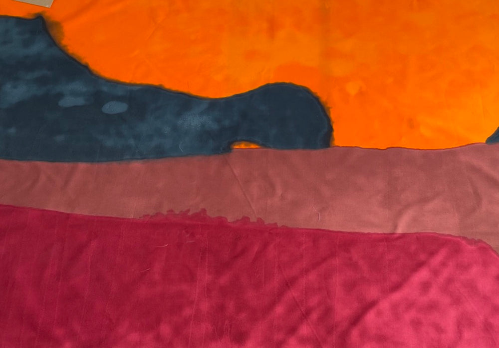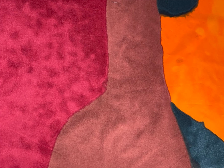 A bold cotton poplin panel in an abstract, graphic print in shades of raspberry, orange, dark mauve, and indigo - this expressionistic print with its subtle organic variation in color is perfect for a fabulous coat, a mock color-blocked sheath dress, or even a wall hanging. Sold by the panel; each panel is 56” long x 63” wide. Made in Italy and used by Jill Sander. 100% cotton. 63" wide.