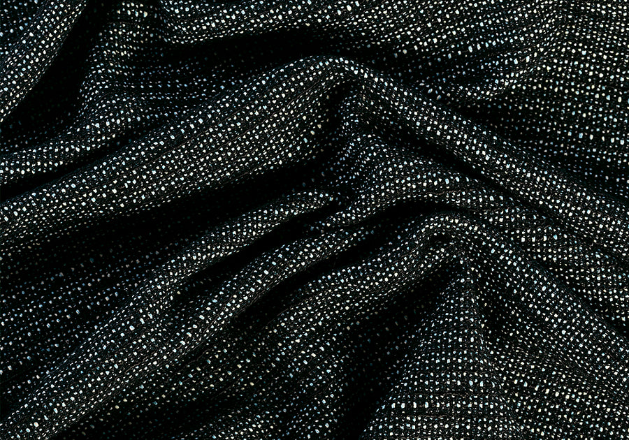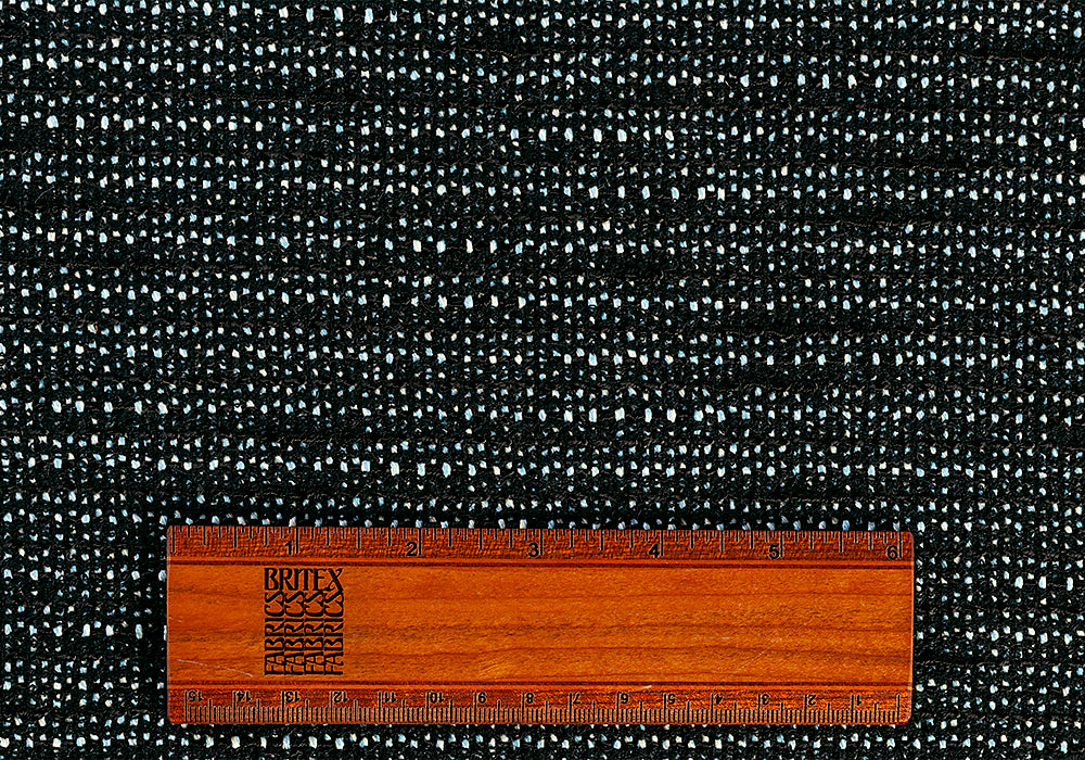 A textured 'n tweedy cotton blend in black with baby blue and winter white accents - perfect for a French, high-end, couture-style jacket. Made in Italy. 80% cotton and 20% polyester blend. 59" Wide.