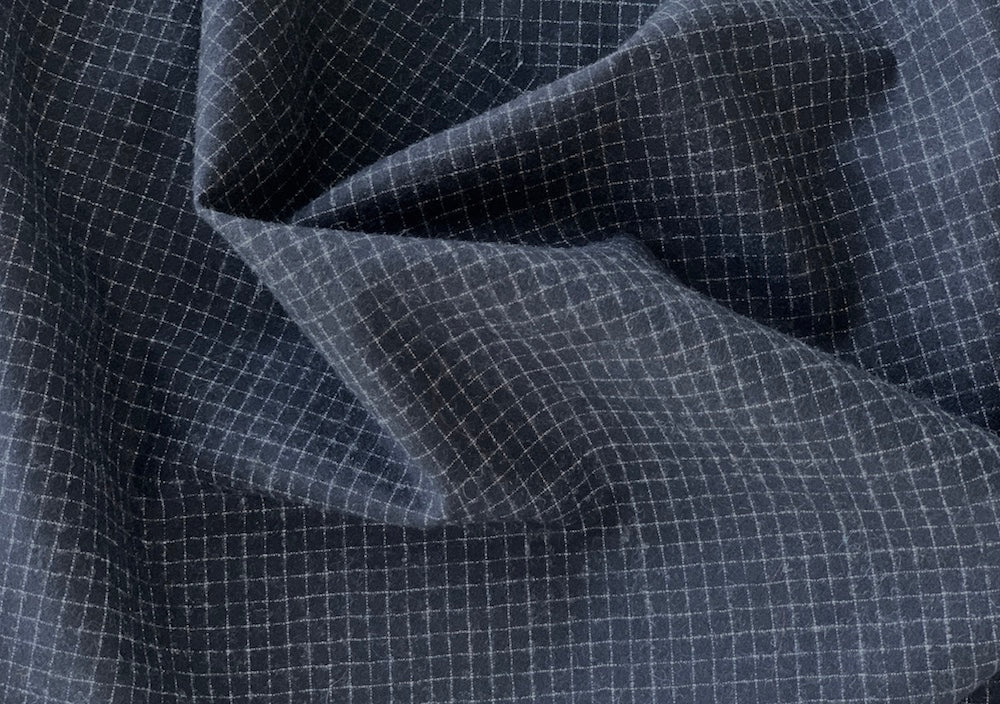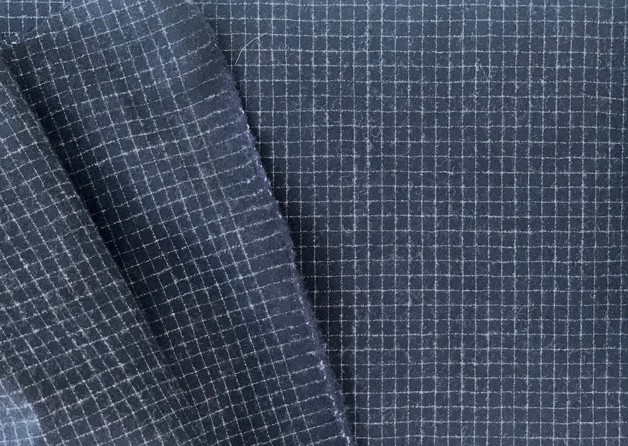 A high-end wool flannel in white mini chalk squares on a black background - this wonderful, light-weight wool flannel is perfect for elegant full pants, a fitted dress, or a handsome suit. Made in Italy. 100% wool. 62" wide.
