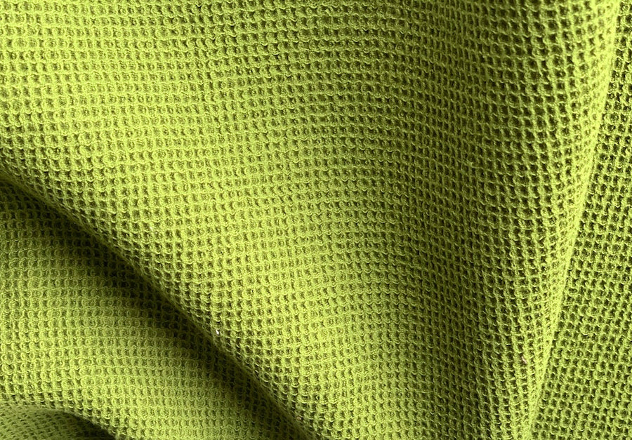 Bright Pear Green Waffle Weave Thermal Cotton (Made in Italy)