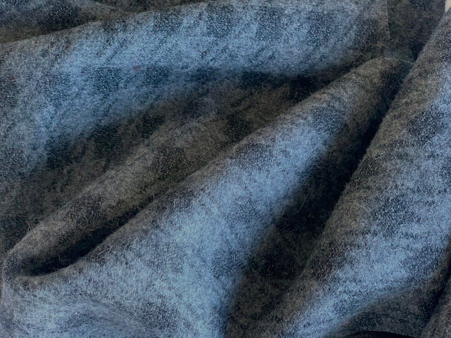 A dense wool blend knit in a steel gray and charcoal mélange houndstooth - soft and smooth, this is perfect for a cozy dress, a skirt, or a jacket. Wool and polyester blend. 54" wide.