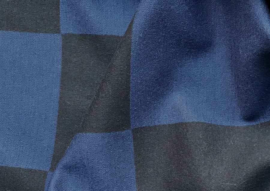 A wool and viscose knit in a classic black and bright navy check - this handsome knit is perfect for a jacket, a hoodie, or pants. 70% wool and 30% viscose. 57" wide.