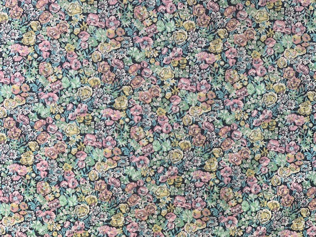 A luxuriously soft cotton lawn from Liberty of London - Chive is a small-scale print of a dense blanket of flowers on a dark navy background.