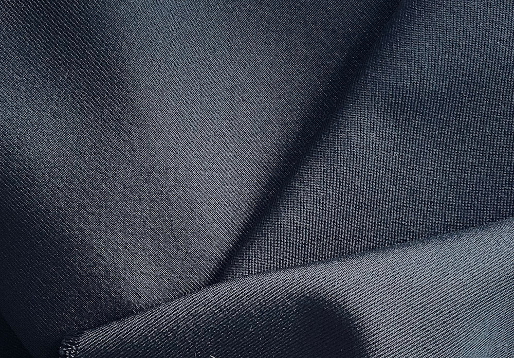 A non-wrinkle polyester gabardine suiting in classic black - this washable suiting is perfect for a hip-length jacket, coat, a tailored suit, or a glamorous straight skirt. Made in Italy. 100% polyester. 59" wide.