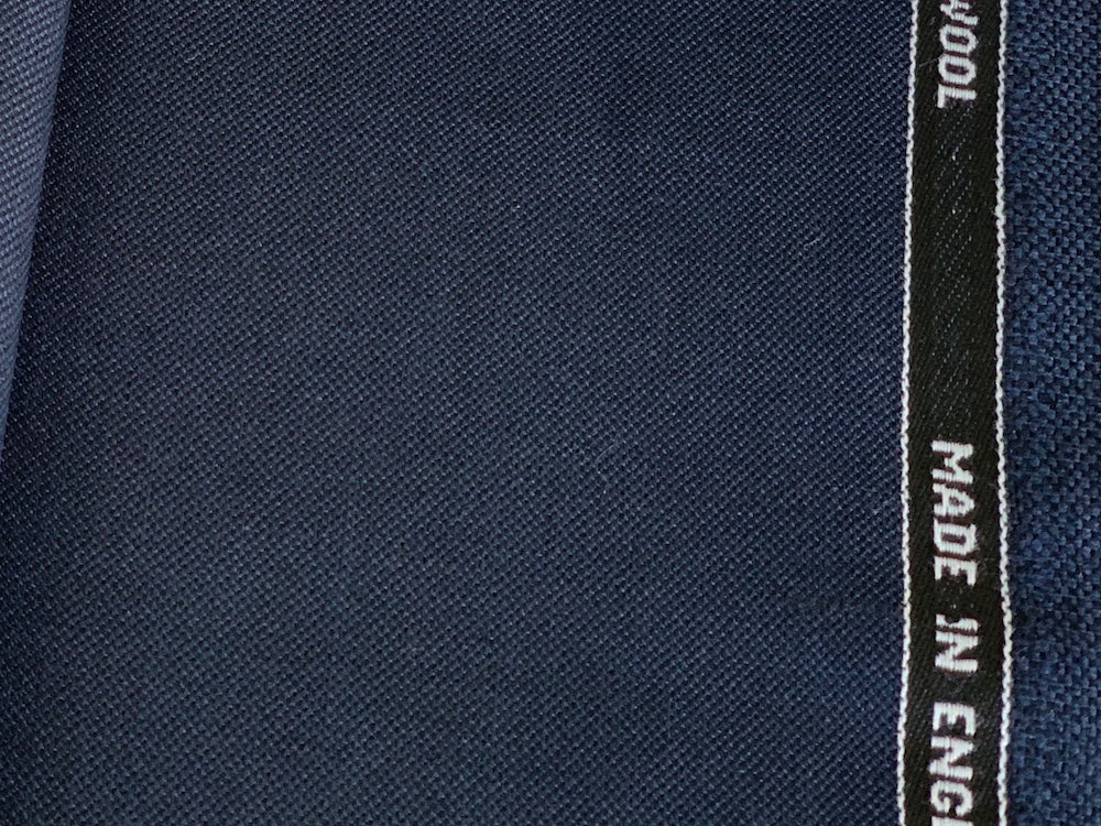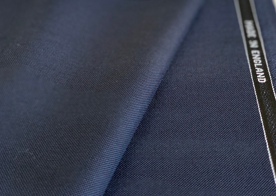 A selvedged Super 100 wool suiting in classic navy blue shot with black - smooth and lightweight, this fine woolen would be perfect for a bespoke suit or slacks. Made in England. 100% wool. 60" wide.