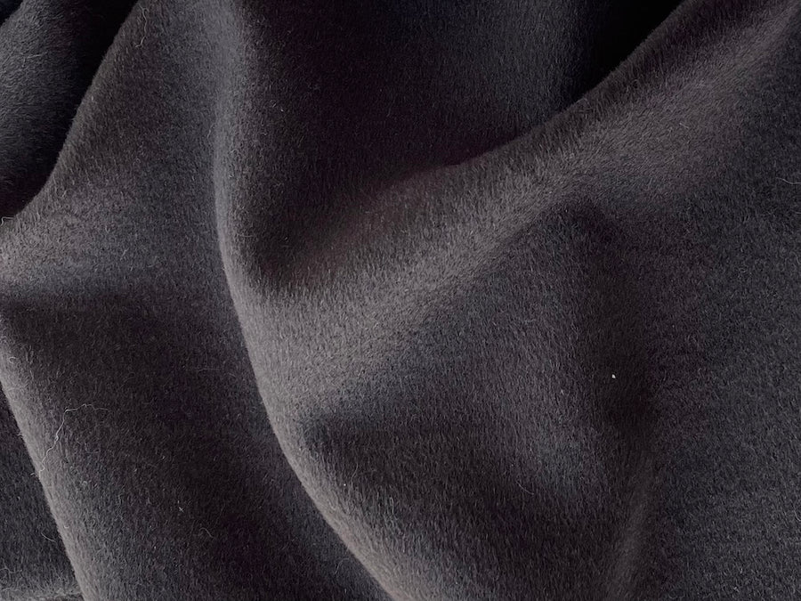A luxuriously soft wool and cashmere blend coating in rich bittersweet chocolate brown - this brushed, mid-weight coating is excellent for coats, capes, and jackets. Used by Cole Haan. Made in Italy. Wool and cashmere blend. 58" wide.